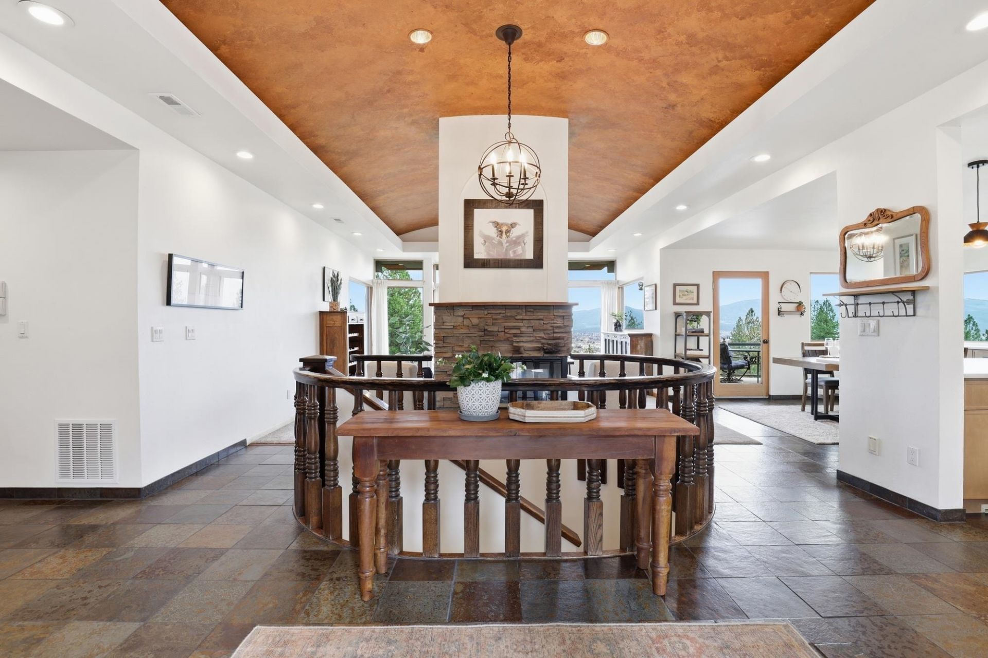 This stunning, Jon Sayler?designed home on over 5 acres offers 3 beds & 3 baths with abundant natural light & panoramic views. The 2025 kitchen is a true showpiece with Café appliances, Taj Mahal quartz counters & backsplash, new cabinetry & slate flooring throughout. The primary suite is a peaceful retreat w/ sweeping views, plush carpet, dual shower heads, double sinks & walk-in closet. Main level features a warm living/dining area with 180 degree views & a guest bath. Lower level offers a second view living space, 2 large bedrooms & a full bath with jacuzzi whirlpool tub, plus laundry, and access to backyard & 2-car garage. A separate 2 bed, 1 bath guest house includes full kitchen, W/D & new water heater. Updates: all new water heaters, radiant heaters (23), roof <5 yrs, cold-weather A/C & heat pump (25) for peace of mind. The 1,600 sq ft heated shop attached to the guest house can house your RV/boat. Home also offers 80x100 sport field, pool w/ commercial water&sand filter, hot tub & so much more!
